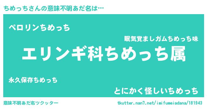 | 男性向けラノベタイトル風あだ名 | 『チメッチスレイヤー』 |