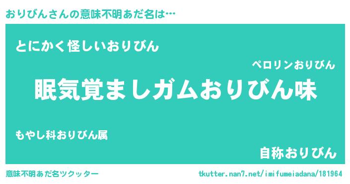 | ヒーロー風カッコイイあだ名 | 『慈愛の使者おりびん』『暗黒騎士オリ』 |