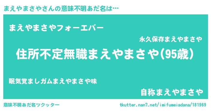 | 女子向けラノベタイトル風あだ名 | 『悪役まえやまさやに転生したようですが、知った事ではありません』 |