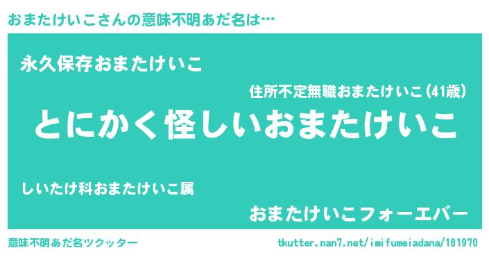 | ポケモン風あだ名 | 『ヒオマタケイコ』『オマゴンZ』 |