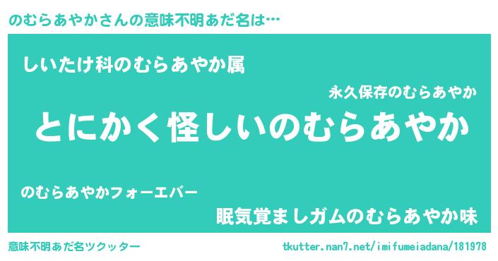 | ポケモン風あだ名 | 『ヒノムラアヤカ』『ノムキング』 |