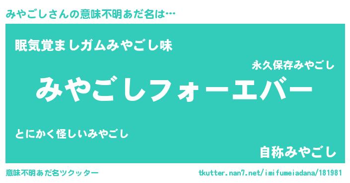 | ポケモン風あだ名 | 『ミヤゴンZ』『ミヤゴダネ』 |
