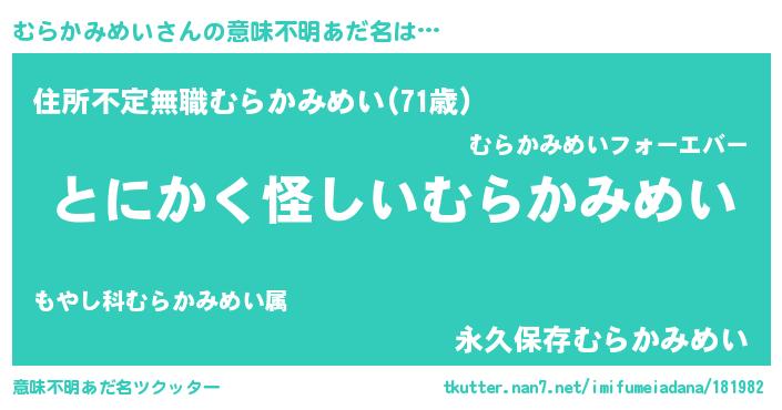 | ポケモン風あだ名 | 『ヒムラカミメイ』『ムーライ』 |