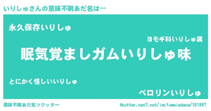 | ヘコむあだ名 | 『いりしゅ(笑)』『いりにー』『豆乳』 |
