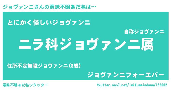 | 女子向けラノベタイトル風あだ名 | 『ジョヴァンニの玉の輿計画!』 |