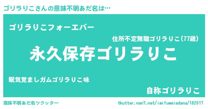 | 胡散臭い通販商品みたいなあだ名 | 『前代未聞の水素水…その名も「ゴリラりこ」』 |