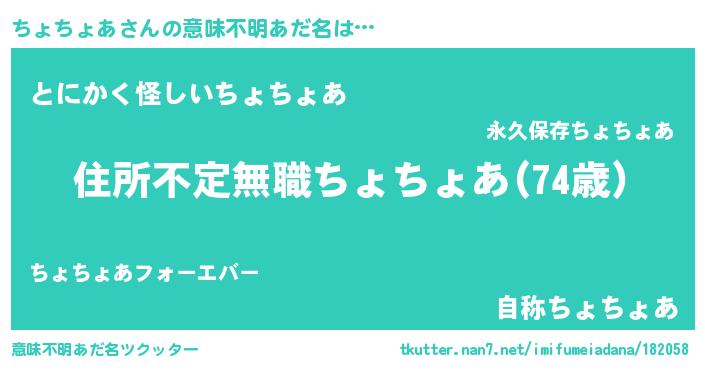 | 女子向けラノベタイトル風あだ名 | 『乙女ゲームの破滅フラグしかない悪役ちょちょあに転生してしまった…』 |