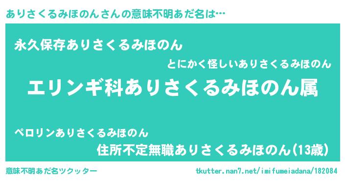 | 胡散臭い通販商品みたいなあだ名 | 『絶対に幸福をもたらす水素水…その名も「ありさくるみほのん」』 |