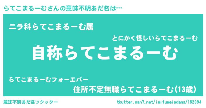 | 肩書あだ名 | 『らてこまるーむ閣下』 |