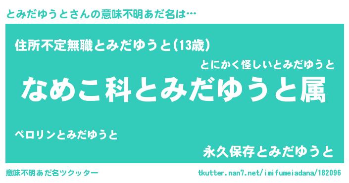| 男性向けラノベタイトル風あだ名 | 『転生したらとみだゆうとだった件』 |