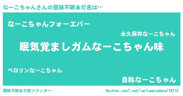 | 男性向けラノベタイトル風あだ名 | 『なーこちゃんに滅ぼされるだけの簡単なお仕事です』 |