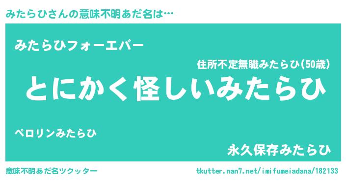 | 胡散臭い通販商品みたいなあだ名 | 『全米が絶賛したサプリメント…その名も「みたらひ」』 |