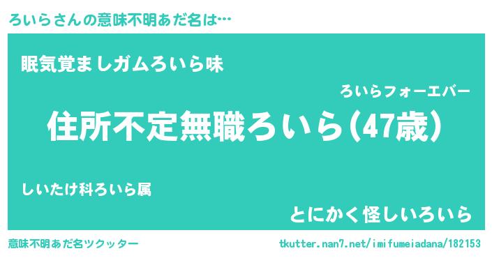 | ヘコむあだ名 | 『ろいっ子』『なまこ酢』 |
