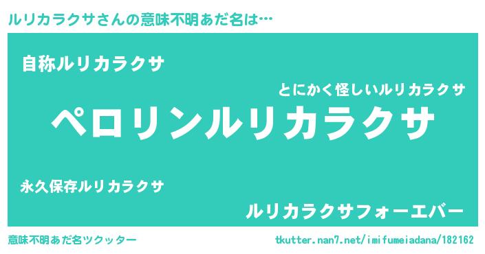| 男性向けラノベタイトル風あだ名 | 『ルリカラクサの憂鬱』 |