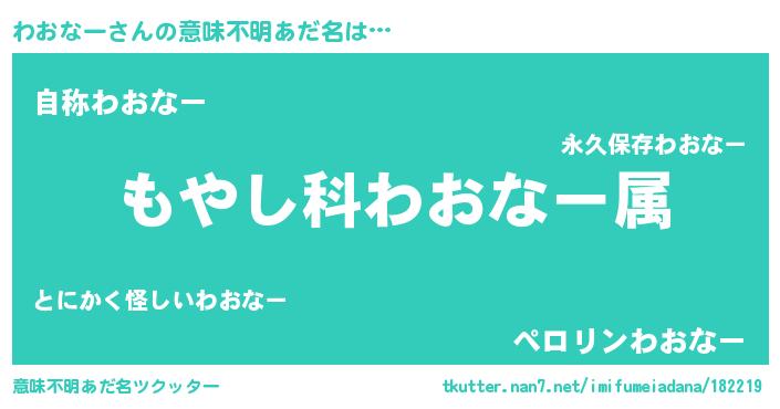 | 男性向けラノベタイトル風あだ名 | 『わおなーに滅ぼされるだけの簡単なお仕事です』 |