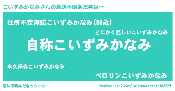| 胡散臭い通販商品みたいなあだ名 | 『テレビで話題の高麗人参…その名も「こいずみかなみ」』 |