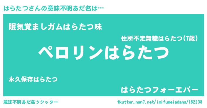 | ヒーロー風カッコイイあだ名 | 『スーパーハラタツ』『仮面ハラダー』 |