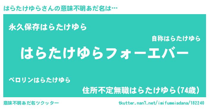 | ファンタジー風あだ名 | 『エターナルハラタケユラー』 |