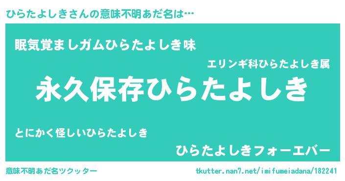 | ヘコむあだ名 | 『ひらたよしき(笑)』『なまこ酢』 |