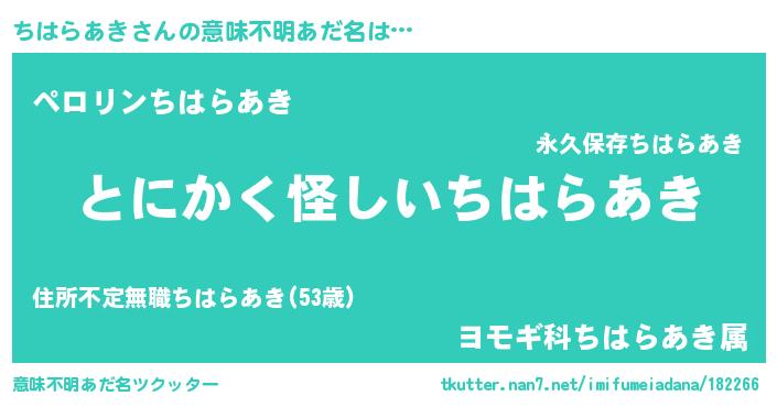 | 女子向けラノベタイトル風あだ名 | 『ちはらあきの卵を拾いまして』 |