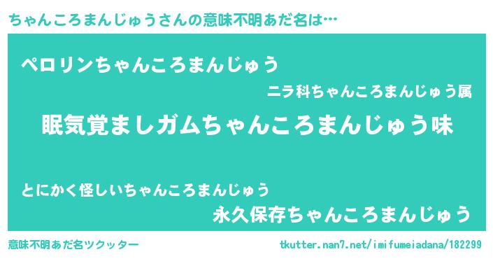 | 女子向けラノベタイトル風あだ名 | 『死神ちゃんころまんじゅうの再婚』 |