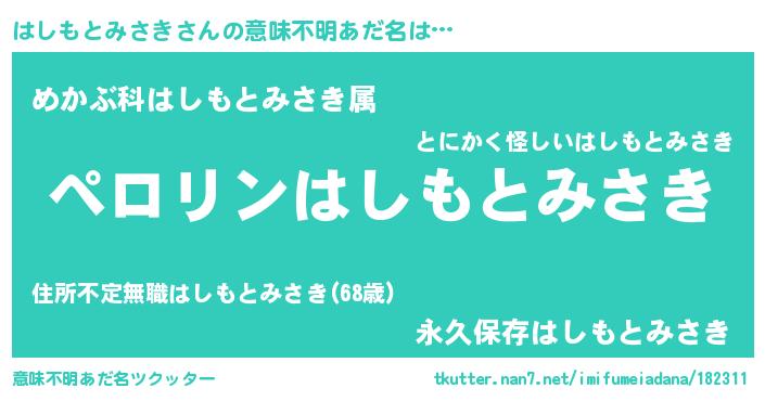 | 男性向けラノベタイトル風あだ名 | 『はしもとみさきに滅ぼされるだけの簡単なお仕事です』 |
