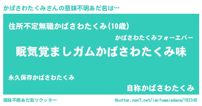| ヒーロー風カッコイイあだ名 | 『慈愛の使者かばさわたくみ』 |