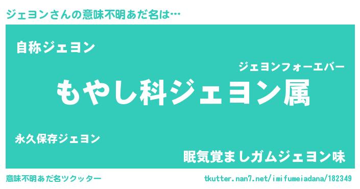 | ヘコむあだ名 | 『なまこ酢』『ジェヨン(苦笑)』 |