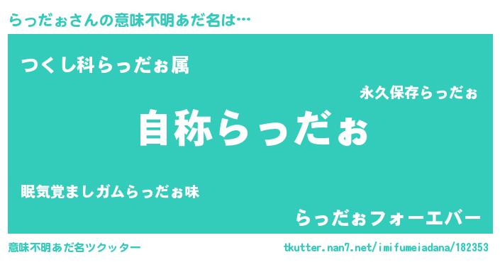 | 胡散臭い通販商品みたいなあだ名 | 『ガンによく効く高麗人参…その名も「らっだぉ」』 |