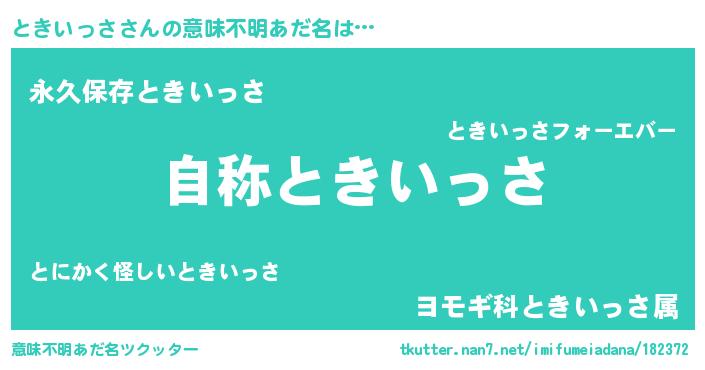 | 男性向けラノベタイトル風あだ名 | 『Re:ときいっさから始める異世界生活』 |