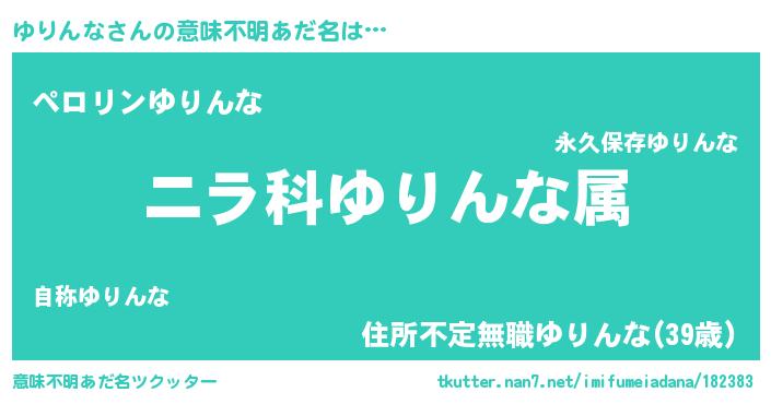 | 男性向けラノベタイトル風あだ名 | 『ゆりんなに滅ぼされるだけの簡単なお仕事です』 |