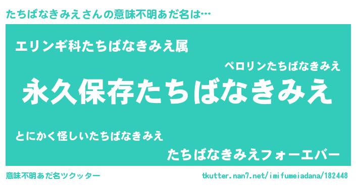 | 男性向けラノベタイトル風あだ名 | 『たちばなきみえという概念が存在しない退屈な世界 』 |