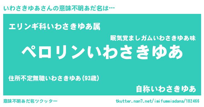 | 胡散臭い通販商品みたいなあだ名 | 『モテモテ間違いなし霊験あらたかなお札…その名も「いわさきゆあ」』 |