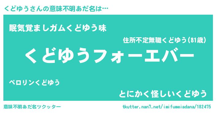 | ヒーロー風カッコイイあだ名 | 『ウルトラくどゆうマン』『天弓騎士クド』 |