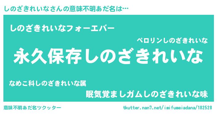 | 男性向けラノベタイトル風あだ名 | 『しのざきれいなという概念が存在しない退屈な世界 』 |