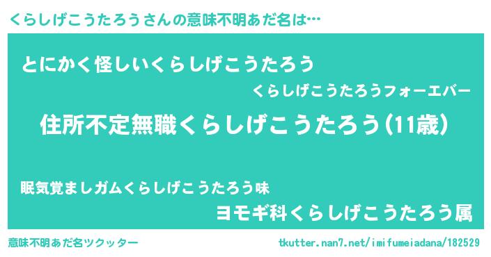 | 欧米人風あだ名 | 『ダレノガレくらしげこうたろう』 |