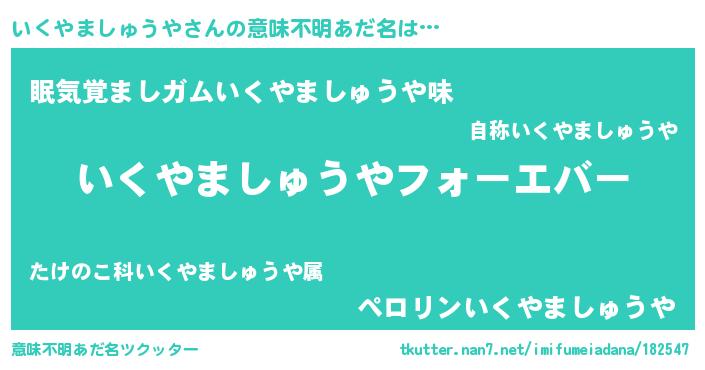 | ファンタジー風あだ名 | 『エターナルイクヤマシュウヤー』 |