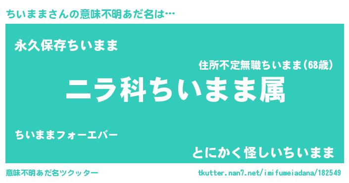 | ヘコむあだ名 | 『ちいまま(小並感)』『ちいぷりん』 |