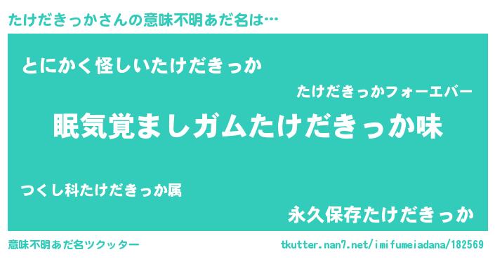| ヘコむあだ名 | 『たけっちょ』『たけだきっか(苦笑)』 |