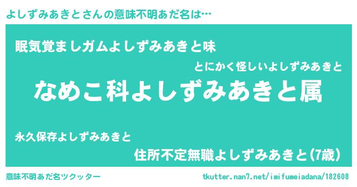 | 男性向けラノベタイトル風あだ名 | 『転生したらよしずみあきとだった件』 |