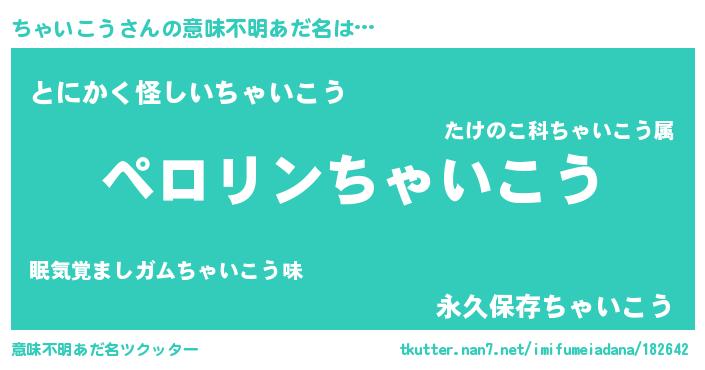 | 女子向けラノベタイトル風あだ名 | 『(仮)ちゃいこうのやんごとなき事情』 |