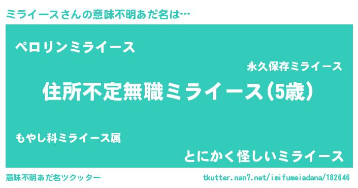 | ヘコむあだ名 | 『ミラにー』『ミラっ子』『豆乳』 |
