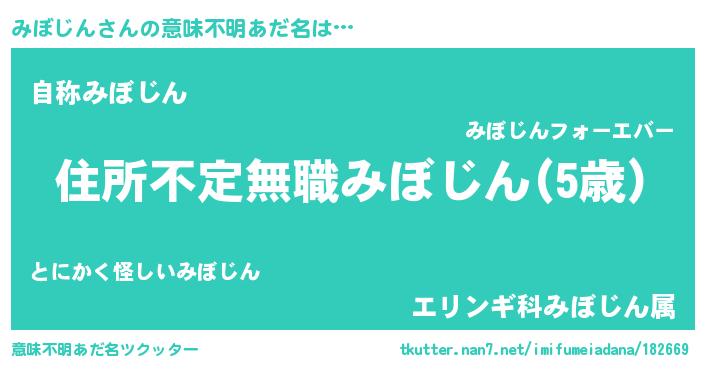 | ヒーロー風カッコイイあだ名 | 『仮面ミボダー』『究極戦士ミボジン』 |