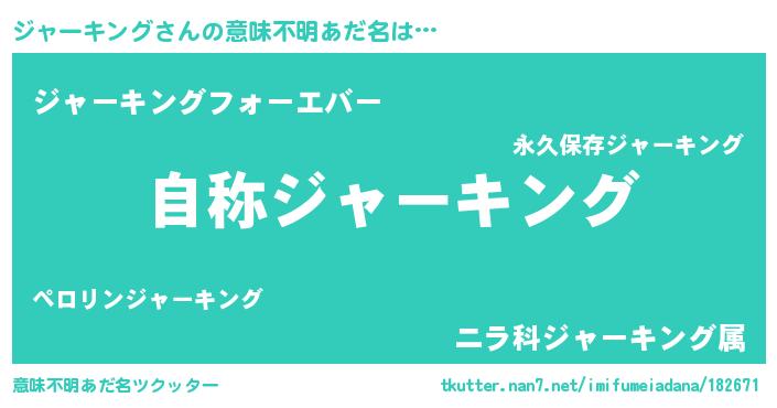 | 女子向けラノベタイトル風あだ名 | 『闇のジャーキング』 |