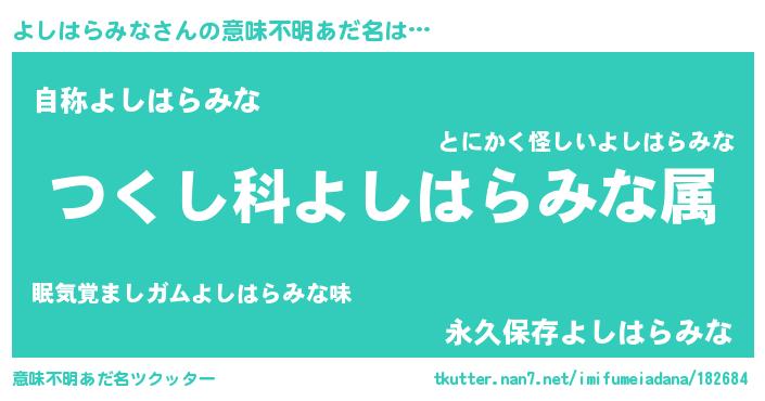 | ヘコむあだ名 | 『よしはらみな(震え声)』『よしっぺ』 |