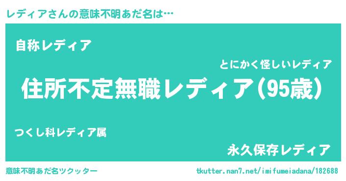 | 男性向けラノベタイトル風あだ名 | 『この素晴らしい世界にレディアを!』 |
