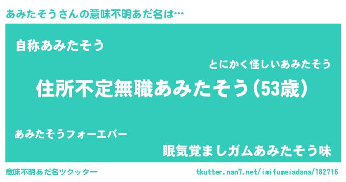 | 伝説のあだ名 | 『救世主となる占い師あみたそう』 |