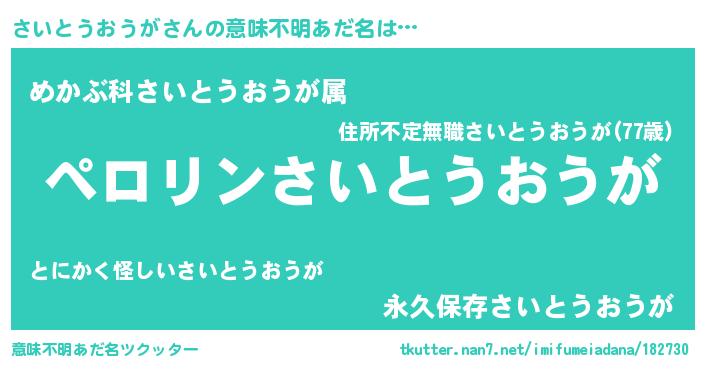 | 胡散臭い通販商品みたいなあだ名 | 『必ず成功する霊験あらたかなお札…その名も「さいとうおうが」』 |