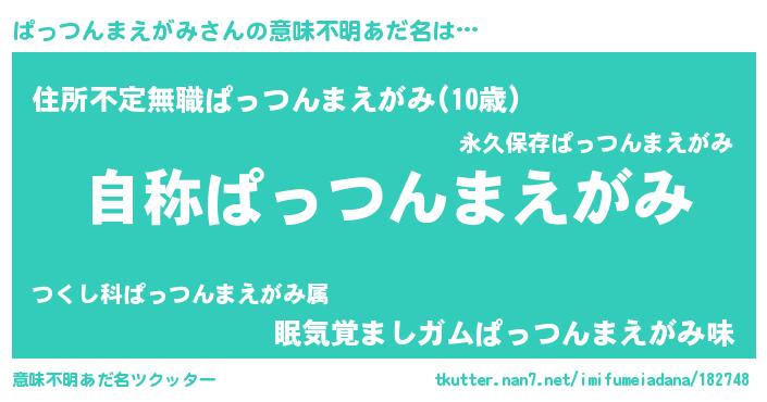 | 欧米人風あだ名 | 『アンジェラ・ぱっつんまえがみ』 |
