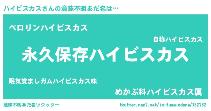 | 男性向けラノベタイトル風あだ名 | 『ハイビスカスという概念が存在しない退屈な世界 』 |